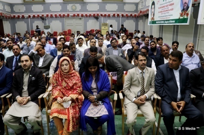 Eng. Rehan Ahmed, Chairman, Pakistan Club gave a presentation to HE Mr. Sanjrani. Reciprocating the gesture, HE Mr. Sanjrni presented a shield from the senate of Pakistan to Eng. Rehan, Chairman, PC, HE Mr.Afzaal Mahmood, Ambassador of Pakistan was also present along with the Embassy staff. A section of the gathering.